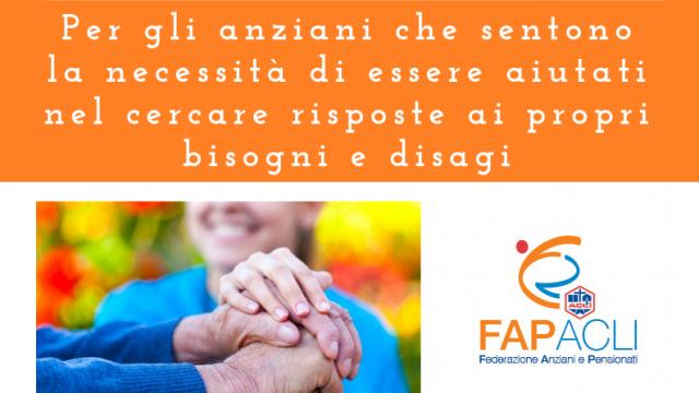 Da settembre 2018 la Federazione Anziani e Pensionati FAP di Padova ha attivato lo sportello P.A.S.S.O.: Punto di Ascolto per il Sostegno Sociale e l’Orientamento rivolto agli anziani della città. Il servizio gratuito offre uno spazio di ascolto e orientamento per la risoluzione di problematiche di varia natura (per esempio: familiare, emotiva, sociale o pratico/burocratica…).