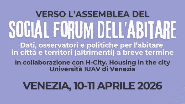 Le giornate di Venezia si chiudono quindi come una tappa di lavoro condivisa, che rafforza una rete nazionale già attiva e orientata alla costruzione di proposte. Il prossimo appuntamento sarà l’Assemblea del Social Forum Abitare di giugno a Roma, dove questo percorso troverà una prima sintesi operativa.