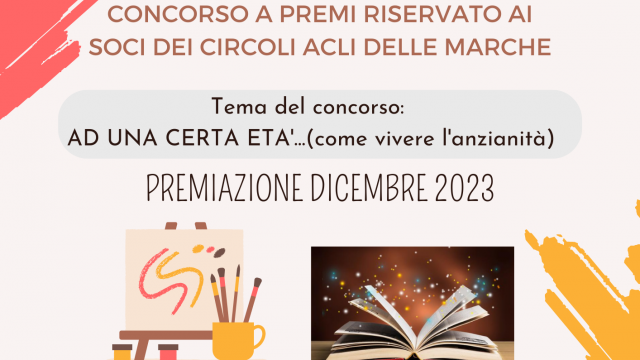 La Fap Acli delle Marche organizza un concorso dal titolo “Artisti…in circolo“, rivolto a tutti i soci e avente per argomento il seguente tema “Ad una certa età…come vivere l’anzianità“.