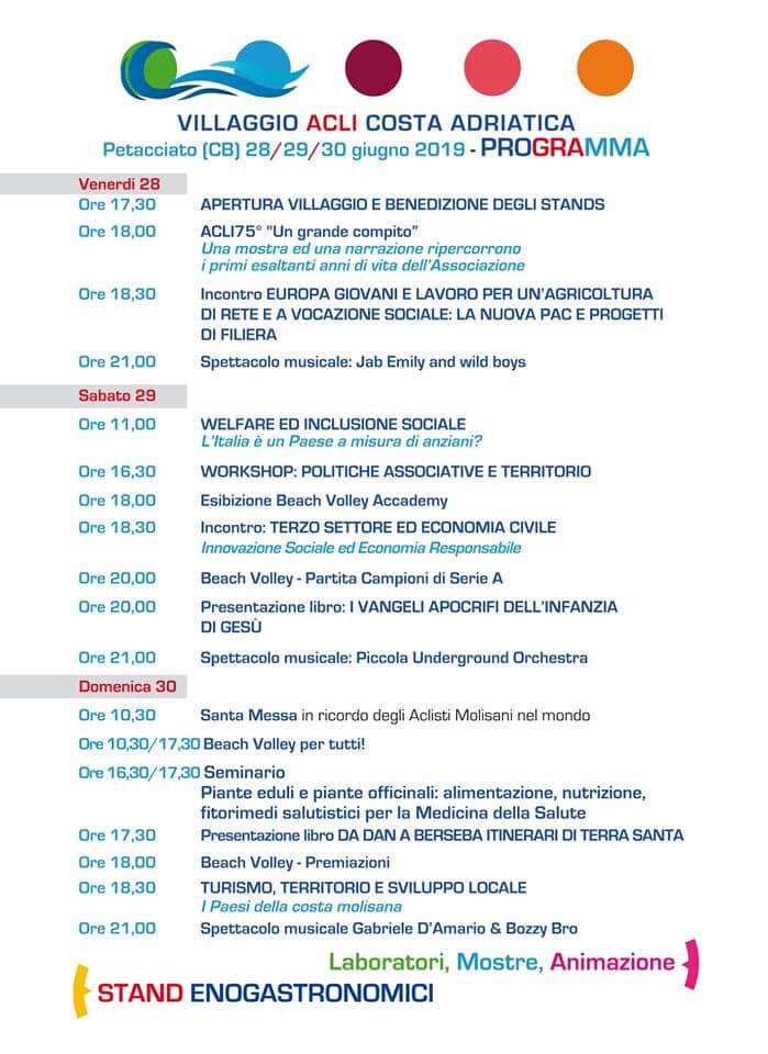 Sabato 29 giugno, a partire dalle ore 11 si svolgerà la Festa Regionale delle ACLI Molise, a Petacciato (CB).