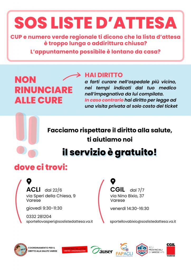 Dal 22 giugno 2023, in collaborazione con le Acli provinciali di Varese ed altre associazioni, la Fap Acli di Varese ha avviato, presso la sede di Varese – via Speri Della Chiesa, 9 -, lo sportello “SOS liste d’attesa“.