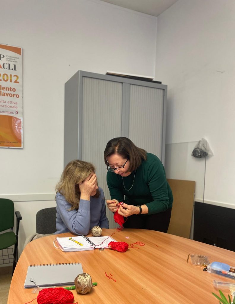 Il gruppo era composto da persone con livelli di esperienza differenti: da chi non aveva mai preso in mano un uncinetto a chi aveva conoscenze basilari. A rendere il percorso così efficace è stato il metodo dell’insegnante, che seguendo ognuna passo dopo passo, adattando le spiegazioni al ritmo di ciascuna ha creato un clima sereno, accogliente e stimolante.